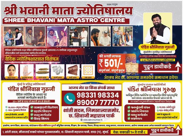 Shree Bhavani Mata Astrocentre in MumbaiIncorporated in the year, 1996, at Mumbai, Maharashtra, We, Pandit Shriniwas Guruji is one of the renowned astrologers and enjoy massive popularity all the across the country and abroad as well for our excellent and exact Astrology Consultancy services. We offer exceedingly efficient and accurate services like Palm Reading, Face Reading, Horoscope, Numerology, Vastu shastra, Nadi Shatra. Every Aspects of Humans Life(i.e) Family back ground, Education & Career, Love & Marriage, Children & There future, Business & Financial Status, Foreign Visits, Health, Property, Political Life, Litigatimes, Enemy, Diseaser, Secrets of Successful Etc. Our professionals work with full commitment under the guidance of our eminent mentor, Indian Famous Astrologer Pandit Shriniwas Guruji who has more than 16 years experience in the field of astrology services. His in depth knowledge and astrology intellect have taken the organization to a glorious and respectable position. Customer Satisfaction : To cater these services and completely satisfy our clients, we offer them easy modes of payment such as cheque, cash, DD etc. Furthermore, we have lucratively served a large client base, which have lived blissfully after availing our services. Moreover, we also certify that our unswerving and result oriented services are rendered at market leading prices. Additionally, clients are guaranteed of the solitude of their personal details that are never leaked out from our end. These factors have made us one of the preferred organizations of clients. Best Astrologers in Mumbai , Best Jyotish in Mumbai, Best Vastu Jyotish in Mumbai, Palm Reading Services in Mumbai, Jyotish services in Mumbai, Face Reading Jyotish services, Expert Jyotish in Mumbai,Expert Face Reading solutions in Mumbai, Black Magic Specialist in Mumbai, Jeevan Kundli Reading Services in Mumbai,Expert Astrologers in Mumbai, Mumbai best astrolger,Famous astrologer in Mumbai,Famous astrologers in Mumbai,Numerologist in Mumbai,General astrology consultation in Mumbai ,Free Astrology Advice On Phone Call ,Nadi Astrology Services in Mumbai,Best Celebrity Astrologer in Mumbai,Astrology Service in Mumbai,Vashikaran specialist in Mumbai ,Famous & Best Astrologer in Mumbai,Wedding Astrologers in Mumbai,Free Astrology Consultancy On Call,Vastu Shastra Consultancy in Mumbai,Top 10 Astrologer in Mumbai,Top Astrologer in Mumbai,Love Problem Solution Mumbai ,Online love problem solution baba ji mumbai,Palmist in Mumbai,Palmistry in Mumbai, Best Palmist in Mumbai,Online love problem solution baba ji mumbai, Palmistry services in Mumbai,Palm Lines Reading Service in Mumbai,Palmistry Astrology Service in Mumbai,Vedic Astrology in Mumbai,Horoscope Prediction Services in Mumbai,Pooja Services in Mumbai